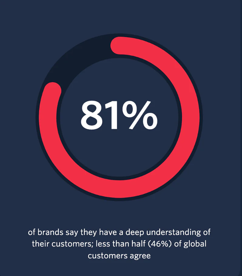 In this year's State of Customer Engagement Report, 81% of brands surveyed said they had a deep understanding of their customers. But less than half of customers agreed.