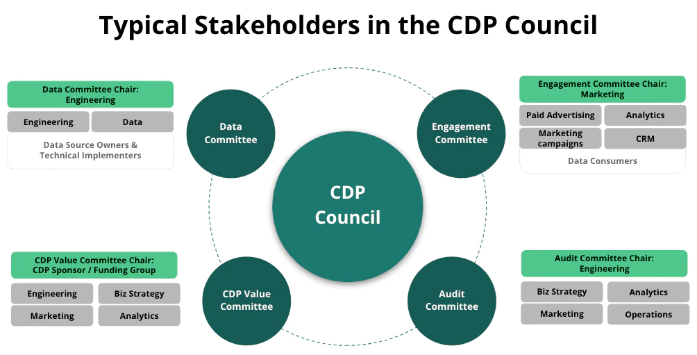 The audit committee plays a critical role in ensuring the integrity, security, and compliance of the CDP operations. Often chaired by engineering or analytics, it conducts regular audits to assess the effectiveness of data management practices and compliance with legal and regulatory requirements.